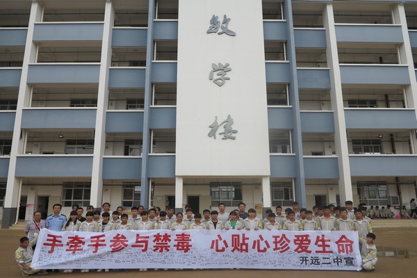 近日,开远市公安局羊街派出所民警到开远市第二中学开展 “ 手牵手参与禁毒,心贴心珍爱生命 ” 为主题的禁毒宣传教育活动,进一步加强禁毒宣传教育工作,提高师生识毒、防毒、拒毒的能力。