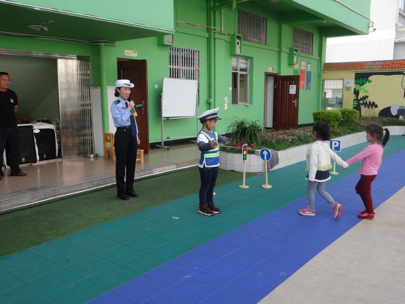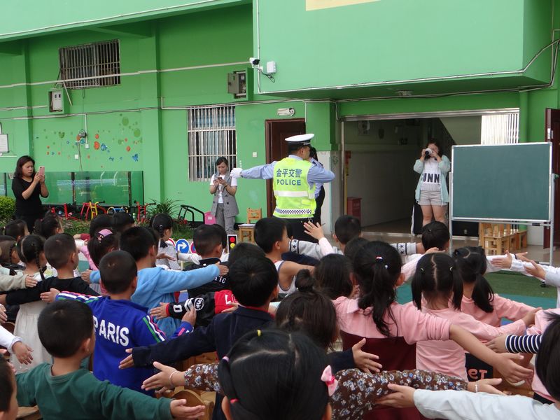 为让小朋友们更直观的了解交通手势,宣传民警带领小朋友们一起学做交通手势,并带领孩子们一起学唱交通安全儿歌。并和小朋友们一起做“我是小交警”的游戏,邀请幼儿园的小朋友扮演交警、驾驶人和行人的角色,将所学的交通安全知识用于游戏中,让孩子们在游戏的同时,将交通安全文明常识和规范准则谨记在心。