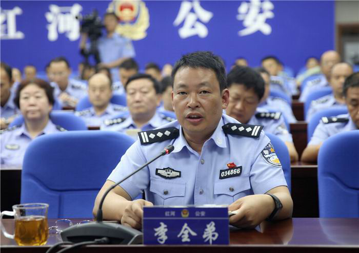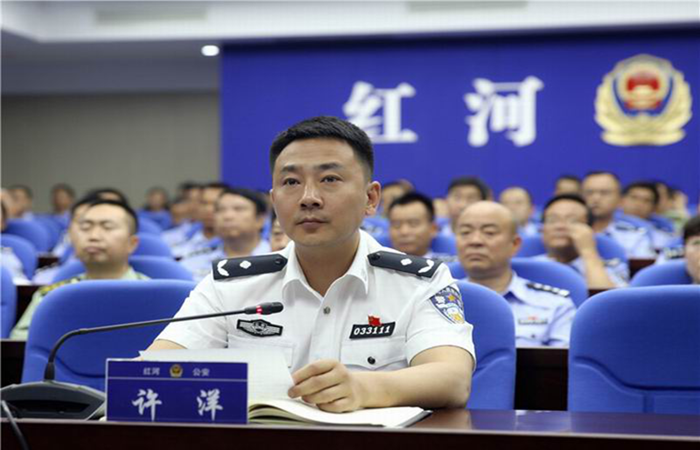 6 月 8 日下午,省厅举办全省公安机关主题教育实践活动第一专题 “ 深化放管服 铁警勇争先 ” 擂台赛,红河州公安局作为被省厅确定的 8 家州市之一上台打擂,最终被评为最具成效的四家州市之一。擂台赛以视频汇报会的形式进行,红河州人民政府副州长、州公安局党委书记、局长许洋作了擂台赛汇报发言,在家党委班子成员、局直各部门和各县市公安局主要领导参加了汇报会。
