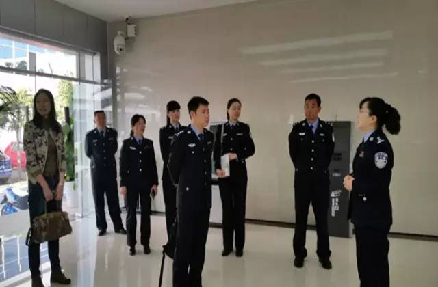 西双版纳州公安局出入境管理支队陆洲副支队长带领景洪市、孟海县、孟腊县公安局出入境管理部门负责同志一行参观了红河州公安局出入境接待大厅,出入境管理局李静局长对强化窗口规范化建设进行了介绍。