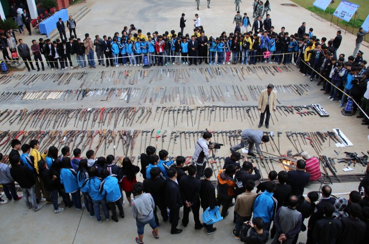 9 月,泸西县作为“全国公安机关销毁非法枪爆物品活动”红河州主会场,将今年2月以来收缴的各类枪爆违禁物进行了现场销毁。技师学院、泸西一中、庐源高中等十多个院校,千余名学生到场观看销毁全程。“虽然现场焚烧只能损坏枪支外部木质部件,所有的枪支、管制刀具还将送至钢铁厂进行切割、熔毁,以防再次流出,但在场的学生看了后,很是震撼。”民警姚红章说。