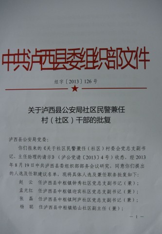 8月21日 ,通过《中共泸西县委办公室 泸西县人民政府办公室关于进一步加强和改进派出所工作的决定》及县委组织部《关于泸西县公安局社区民警兼任村(社区)干部的批复》,泸西县公安局42名社区民警兼任社区、村委会党总支副书记25名、副主任17名。
