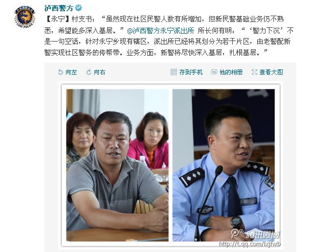警力下沉绝非单纯增加所队民警基数,而是让更多民警有时间扎根社区,将社会矛盾与纠纷从源头化解。为此,泸西县公安局党委积极与县委、政府等多部门协商,通过社区民警兼任社区(村委会)党总支副书记、副主任的形式,使社区警务实现常态化,让民警真正成为守一方安宁的父母官。