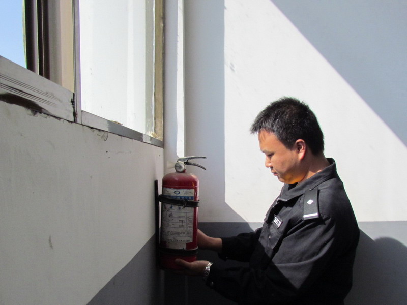 干警认真检查校园安全防护措施
