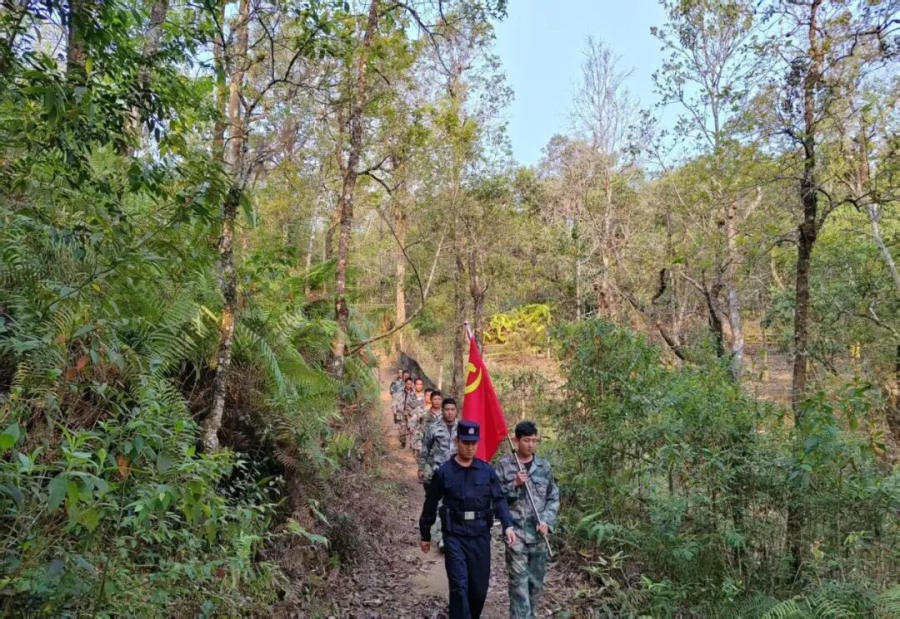 “自服务队成立以来,巡边护边的队伍越来越大,一些群众还会主动参与进来,大家守边的意识越来越强。”杯倮村党总支书记、服务队队员李才云说道。凭借对家乡山水的熟悉与热爱,队员们自发担负起巡边护边的重任。他们的身影常年穿梭在边境小径、山林沟壑之间,用一次次踏实的脚步,熟悉着每一段边界的变化。泥泞的山路、茂密的丛林、陡峭的山崖、不知名的蚊虫……这些都已成为他们巡边路上的“常客”。他们不仅是边境情况的报告员,更是联防联控的“民间哨兵”,以其独特的乡土优势,有效延伸了边境管理的触角,60余次边境巡逻,让非法活动无处遁形。