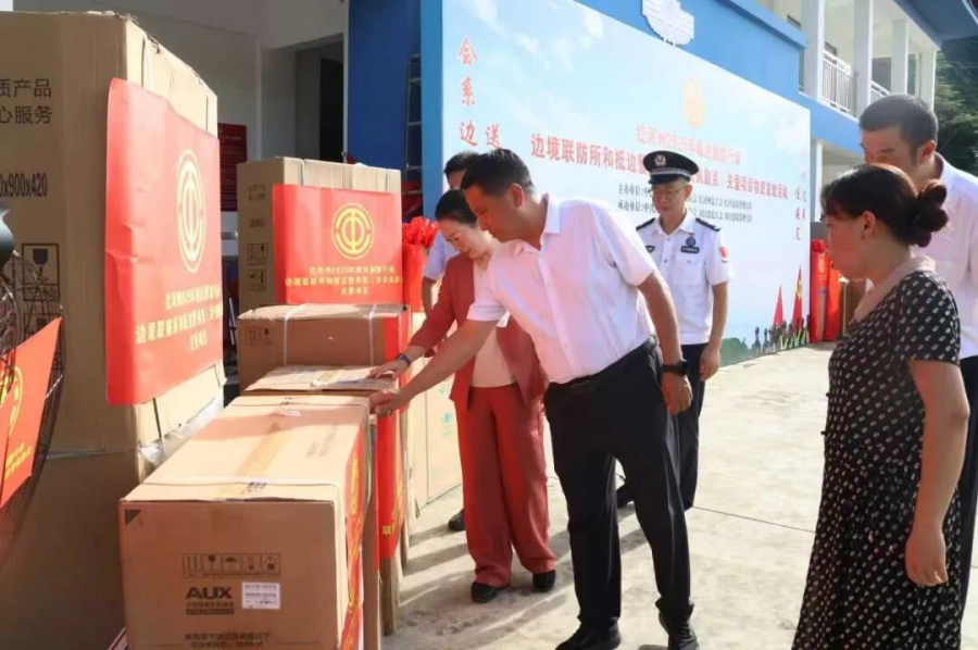 随后,边境联防员和民辅警代表发言,他们表示,将用“守边有我、请党放心”的实际行动,忠实履行职责,守护好祖国每一寸神圣国土。出席活动的领导为联防员代表发放温暖慰问金,为大家送上国庆、中秋双节祝福,同步向全州边境联防所、抵边警务室发放急需的摩托车、防寒服、冰箱、洗衣机等共计价值143万元的关爱物资。