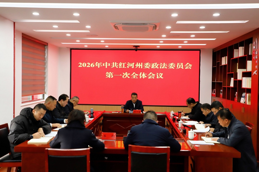 1月9日上午,州委常委、州委政法委书记董万春主持召开州委政法委员会2026年第一次全体会议,深入学习贯彻习近平总书记二〇二六年新年贺词、习近平总书记对全面依法治国工作的重要指示和中央全面依法治国工作会议精神,以及党中央、省委和州委有关工作会议精神,学习省委常委、省委政法委书记胡大鹏到红河州调研时的指示要求,研究部署近期政法重点工作。州委政法委员会委员出席会议。