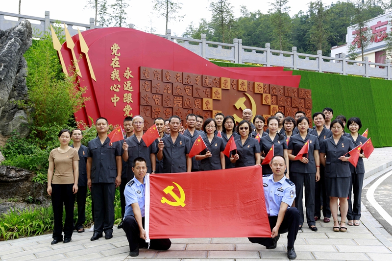 现场参观完毕,代表委员、特约监督员们和法院干警一同到宣誓台重温入党誓词。在红河州中级人民法院党组书记、院长起绍洪的带领下,全体党员干部在宣誓台前庄严肃穆、举起右手,“我宣誓,我志愿加入中国共产党.......”,阵阵高亢嘹亮的回声响彻山谷。