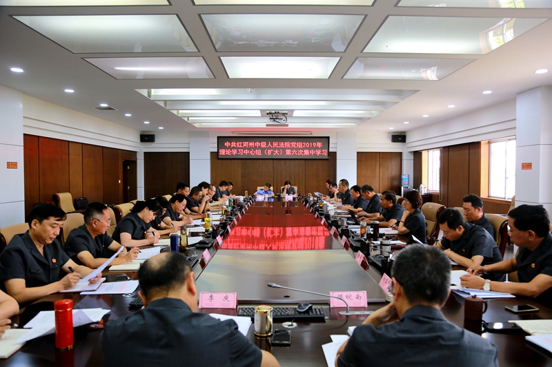 7月29日,红河中院举行2019年党组理论学习中心组第六次集中学习,就习近平总书记在中央和国家机关党的建设工作会议上的重要讲话精神、政法领域全面深化改革推进会精神以及州委政法委《关于在“不忘初心、牢记使命”主题教育中开展全州政法队伍突出问题集中整治的实施方案》等内容进行深入学习。红河中院领导班子成员、审委会专职委员、各部门负责人以及政治部副主任、执行局副局长参加了集中学习。