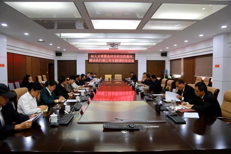 在26日于州中院召开的调研座谈会上,州中院党组成员、副院长李才学围绕规范执行行为、执行案件专项行动、落实解决执行难工作格局、信息化建设和队伍建设等五个方面向调研组汇报全州法院“基本解决执行难”工作情况。2016年1月1日至2019年8月31日,全州法院共受理执行案件34923件,执结29464件,未结5459件,结案率为84.37%,实际执结率49.28%。有财产可供执行案件法定期限内执结率为87.04%,无财产可供执行案件终本合格率为98.73%,涉执行信访案件办结率为100%。全州法院依法拘留拒不履行生效判决的被执行人667人,判处拒执罪11人,移送涉拒执罪28人,对42个被执行人罚款共计246000元,限制出境25人次,限制高消费14501人次,将5672名被执行人纳入失信被执行人名单。