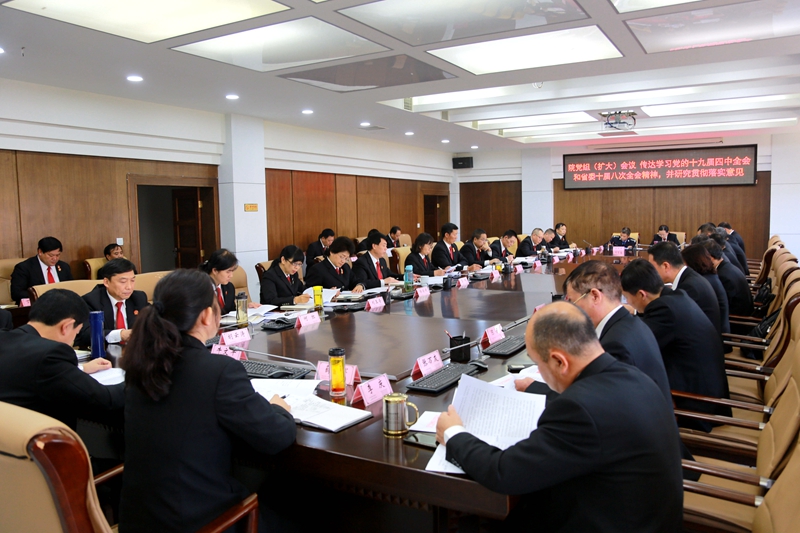 会上,传达学习了党的十九届四中全会和省委十届八次全会精神,院党组书记、院长起绍洪结合法院工作实际,就如何深入学习贯彻会议精神作安排部署。