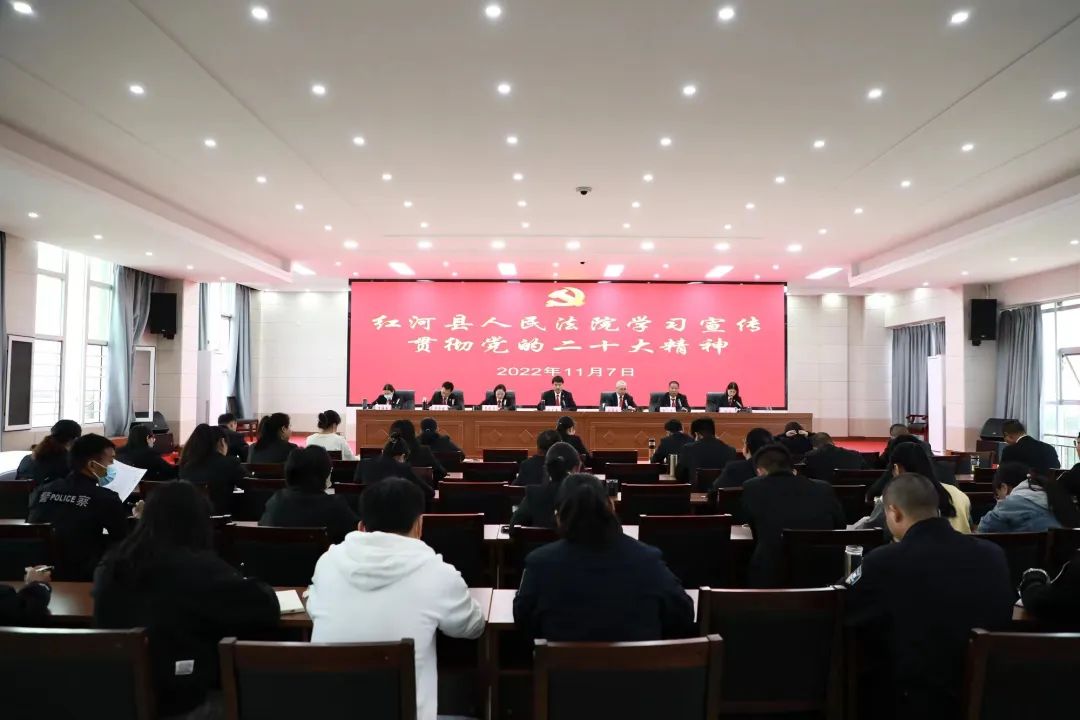 11月7日,红河县人民法院召开全院干警大会,传达学习贯彻党的二十大精神。会议由党组成员、副院长孙绍云主持,党组书记、院长纪文阜出席会议并讲话。